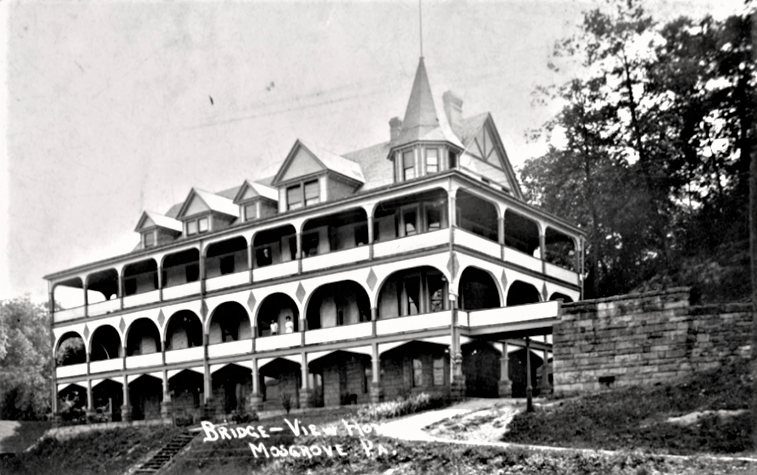 One of the most outstanding buildings of northern Armstrong County was the Bridge View Hotel built overlooking the Allegheny River in Mosgrove, Rayburn Township, Armstrong County.